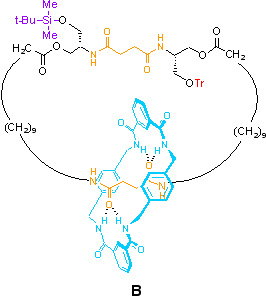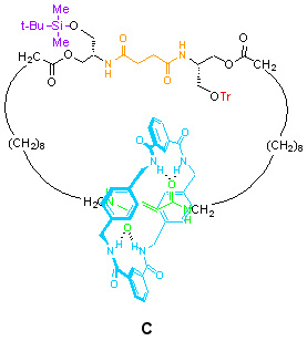 This provides the essential driving force for repeated net change in position of the small macrocycle (i.e. it gives us control over the thermodynamics of small ring transport). As we have seen with catenane B, the decision of which bulky gate group is removed can be used to select which path the small ring takes each time it moves (i.e. control over the kinetics of small ring transport). By combining these two features in catenane C, we can achieve repetitive unidirectional rotation in either direction simply by carrying out the chemical steps in the correct order (see Scheme 1).