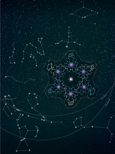 Figure 1. Starry, starry night. [‘A Star of David Catenane’ David A. Leigh, Robin G. Pritchard and Alexander J. Stephens, Nature Chem, published online 21 Sept 2014]. Image credit: H. Adam Steinberg (www.artforscience.com).