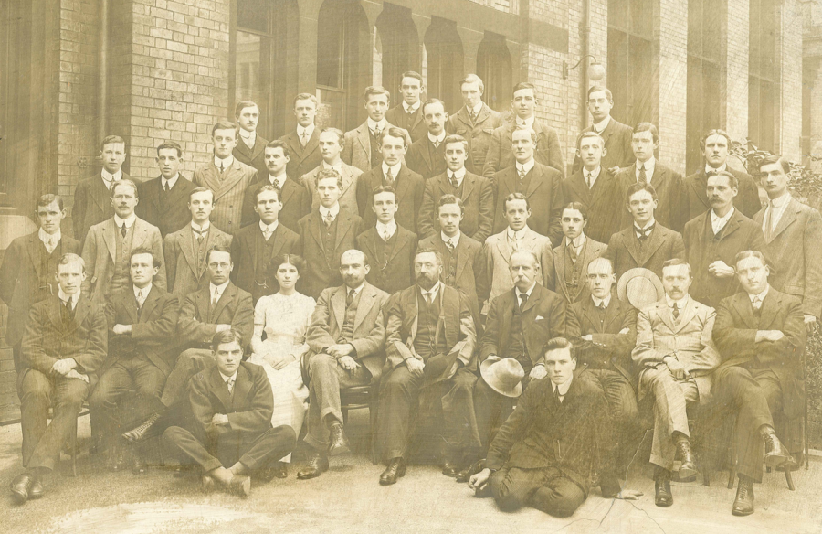 Figure 5. Members of the Chemistry Department, University of Manchester, 1911. Chaim Weizmann (front row, 5th from left); other notable persons seated on the same row include William Henry Perkin Jnr (6th from left) and Robert Robinson (Nobel Prize 1947; furthest left).