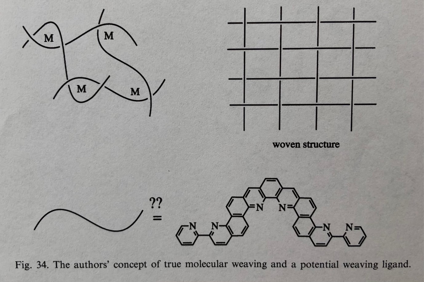 In 1992, less than a decade after Jean-Pierre Sauvage’s lab carried out the first metal template synthesis of a [2]catenane,1 Daryle H. Busch (who along with, independently, Neil F. Curtis2 was the first3 to recognise and exploit metal template effects in chemical synthesis) predicted4 the possibility of “molecular weaving” from “orderly entanglements” based on metal coordination complexes. A few years later, Busch & then-graduate student Tim Hubin went a step further, proposing5 a vision for woven molecular designs, including concepts such as the one shown in Figure 1. Busch and Hubin suggested that “The ultimate aspiration of chemists working on interlocked structures might be to weave molecules as if they were macroscopic threads”, concluding that “Although this goal seems distant, progress is being made”.5