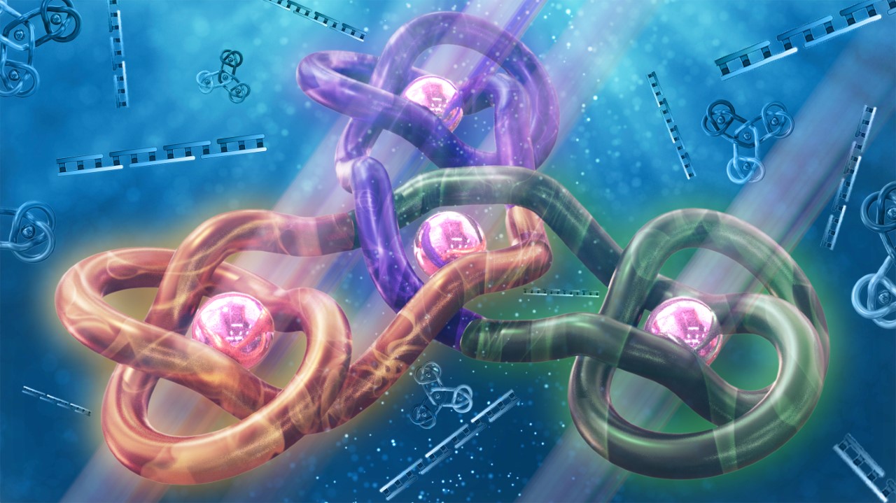 8. (a) H. Adams, E. Ashworth, G. A. Breault, J. Guo, C. A. Hunter, P. C. Mayers, Knot tied around an octahedral metal centre. Nature 411, 763 (2001). (b) G. Gil-Ramírez, S. Hoekman, M. O. Kitching, D. A. Leigh, I. J. Vitorica-Yrezabal, G. Zhang, Tying a molecular overhand knot of single handedness and asymmetric catalysis with the corresponding pseudo-D3-symmetric trefoil knot. J. Am. Chem. Soc. 138, 13159–13162 (2016). (c) D. A. Leigh, J. J. Danon, S. D. P. Fielden, J.-F. Lemonnier, G. F. S. Whitehead, S. L. Woltering, A molecular endless (74) knot. Nat. Chem. 13, 117–122 (2021). (d) J. P. Carpenter, C. T. McTernan, J. L. Greenfield, R. Lavendomme, T. K. Ronson, J. R. Nitschke, Controlling the shape and chirality of an eight-crossing molecular knot. Chem 7, 1407–1409 (2021).