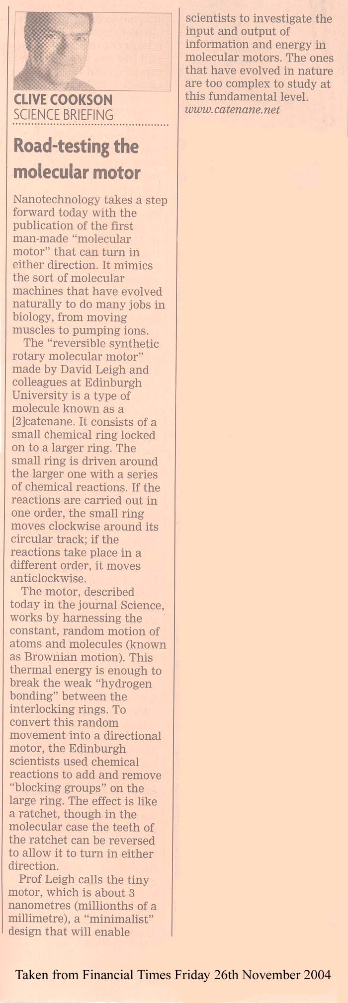 J S Hannam, S M Lacy, D A Leigh, C G Saiz, A M Z Slawin and S G Stitchell, Angew. Chem. Int. Ed., 43, 3260-3264 (2004).