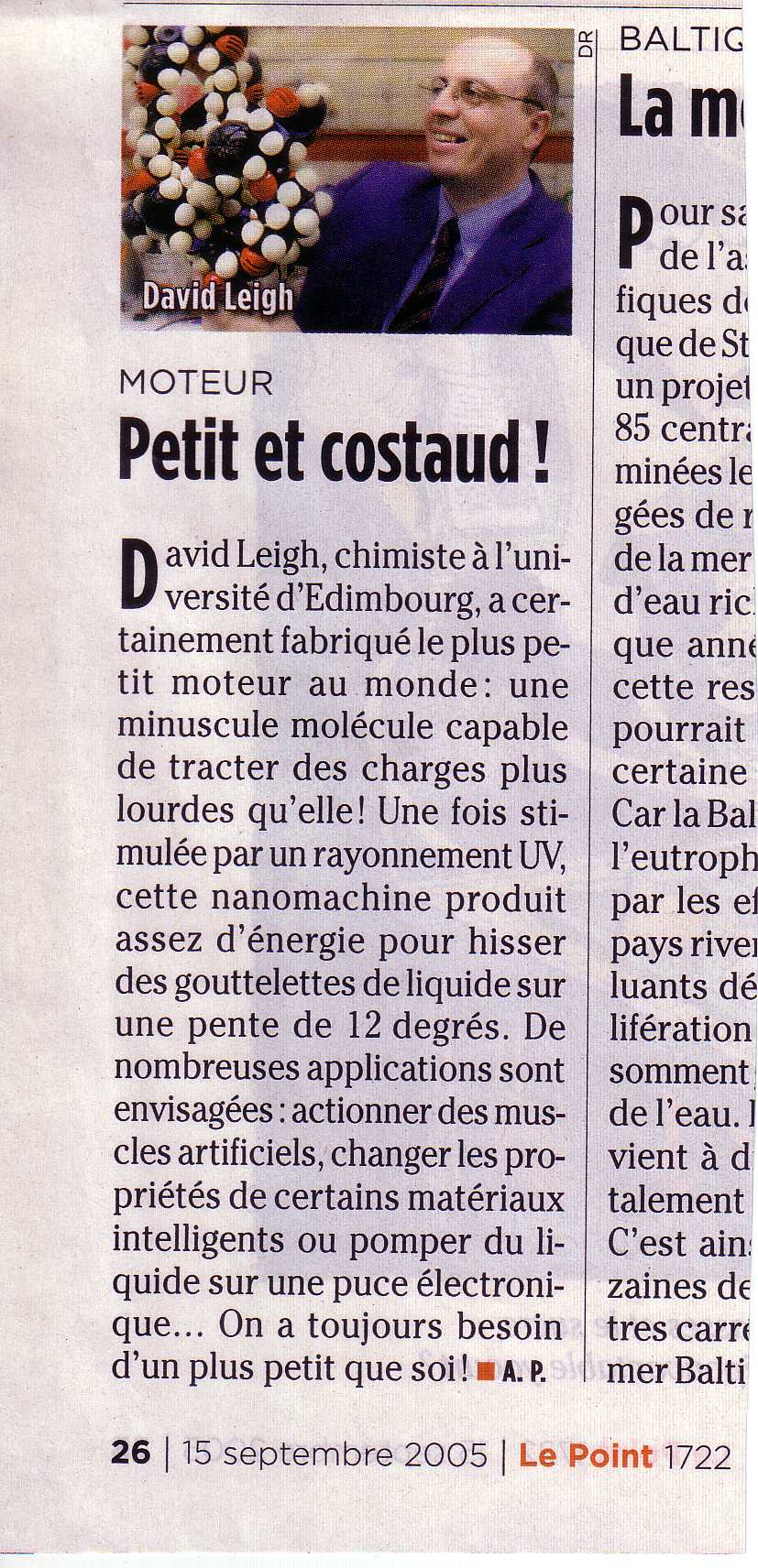 - "A Generic Basis for Some Simple Light-Operated Mechanical MolecularMachines", E M Pérez, D T F Dryden, D A Leigh, G Teobaldi and F Zerbetto, J. Am. Chem. Soc, 126, 12210-12211 (2004).